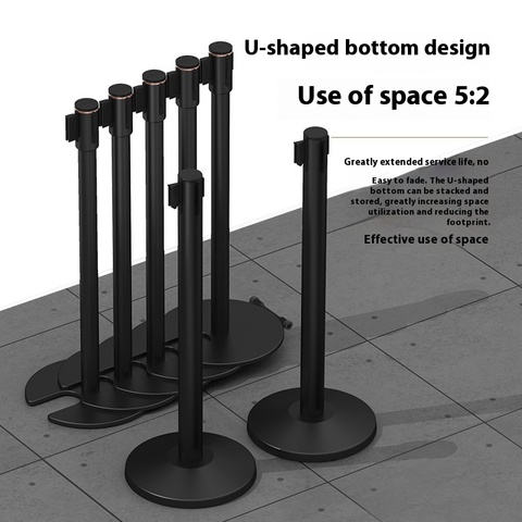 Convenient Transport Traffic Barriers Retractable Queue Line Barrier with U-Shaped Stackable Base & Metal Wheels